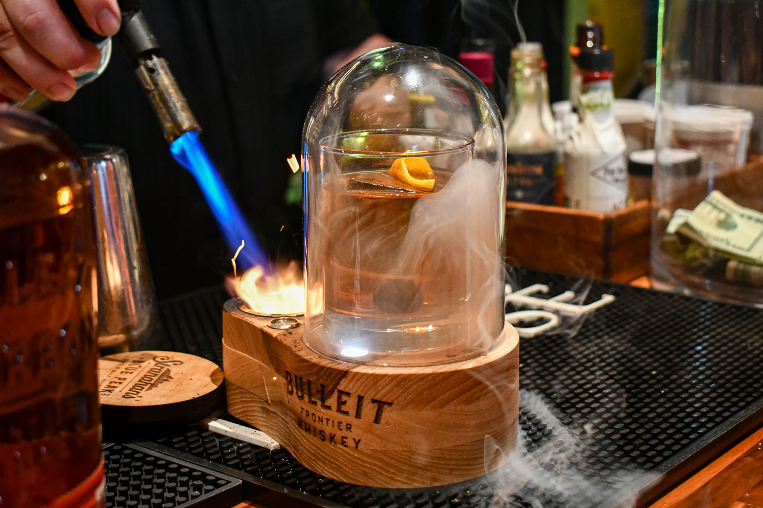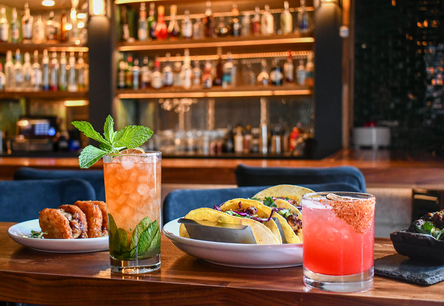 Private Client is a hidden‑gem cocktail bar nestled in East Downtown, at 2118 Lamar St, just steps from the George R. Brown Convention Center and several live‑music venues. It offers a sleek, modern interior with dinner, lounge and bar seating. Our space is perfect for large party reservations and buyouts for private events. The cocktail menu is packed with inventive cocktails such as the Space City Mule, Mango in the Hole, Smoked Old Fashioneds, and more. Our food offerings include bar bites to shareables apps along with steaks and lamb from the grill. Expect a relaxed, no‑fuss vibe—guests typically seat themselves, making it great for laid‑back happy hours.